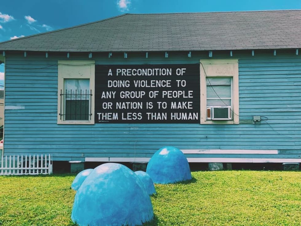 We started our trip at the Lower Ninth Ward Living Museum, a small gallery narrating the past, present, and future of the "Lower Ninth Ward," a region of New Orleans struck by poverty, racial injustice, and the most damage from Katrina. The gallery discussed the hurricane, the role of levees that broke and flooded under-resourced areas, and the delayed and poor response to Katrina and the levee by officials in the federal, state, and city level. The trip was crucial in giving context to the two worlds we were stepping in: the world of notorious partying and drinking and the world of community and activism. As we walked around the French Quarter, for instance, where people drank like there was no tomorrow and there were endless streets full of clubs and bars, it struck me that these popular areas didn't face tremendous flooding during Katrina. It survived, however, at the expense of the Lower Ninth Ward, when authorities chose saving property over people.