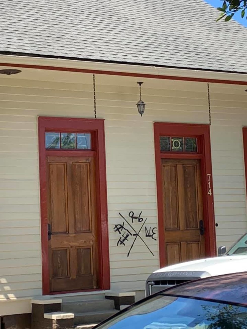 Home with remnants of Katrina markings