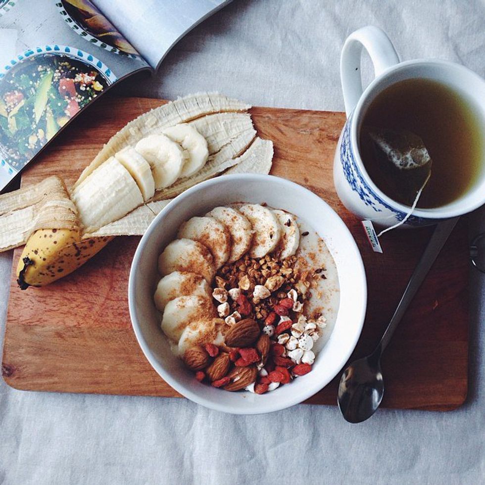 Breakfast really is the most important meal of the day. If you skip it, you'll most likely find yourself snacking throughout the day. Breakfast gives you the energy you need to jumpstart your day. Try looking up healthy breakfast ideas on Pinterest. My favorite is a simple smoothie bowl blended with frozen mixed berries, Greek yogurt, spinach, and almond milk. Top that off with some fresh berries, granola, and goji berries and you have yourself a fulfilling summer breakfast.