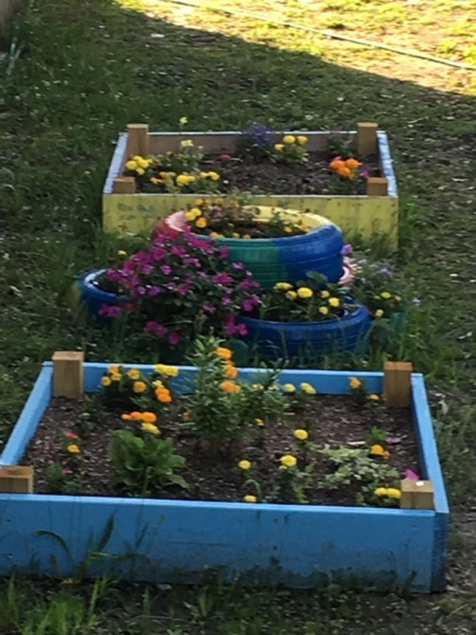 They couldn't wait to start planting. At this stage of the project, we didn't have the garden up. However, we worked around it and created a temporary one.