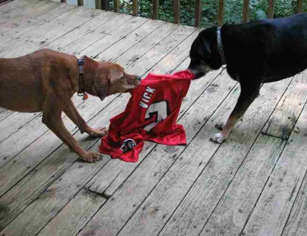In case you don’t know, Vick was charged with a felony in 2007 for involvement in an illegal dog-fighting operation and served nearly two years in federal prison.