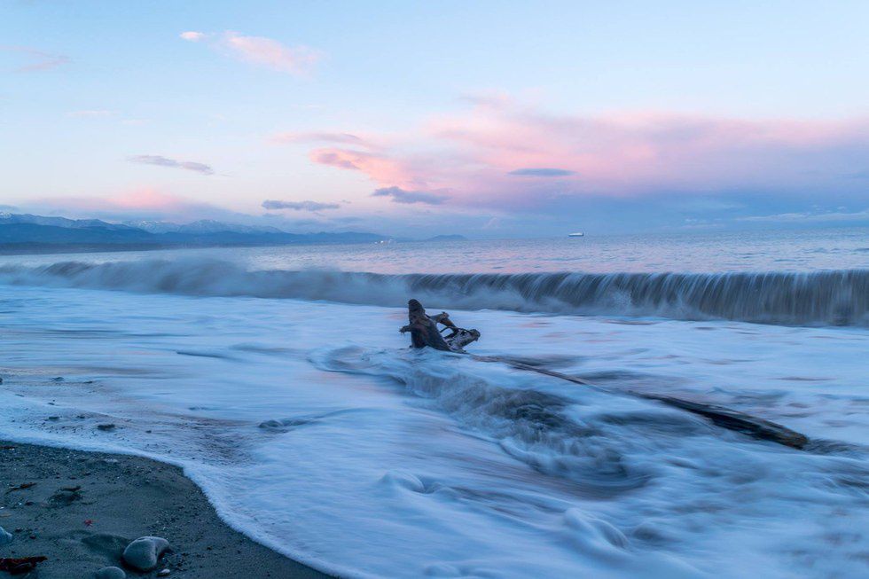 In December my friend and roommate, Kaveh, went on an adventure to the Washington coast. There was a storm that weekend and he slept through it in his car on the beach. He later told me about the cold, the noise, how it was scary and he hardly got any sleep. Then, he showed me the pictures he took that morning, featuring the rich colors and cool tones only a storm can bring:
