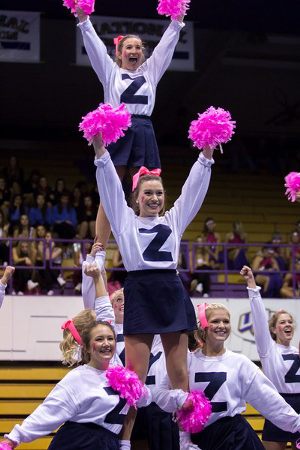 As soon as Zeta Tau Alpha took the stage, the game changed. Sporting sweatshirts, skirts, pink ribbons, pompoms and ponytails, Zeta put a new spin on the traditional style of stepping. Complete with stunts, classic cheer music, and fun dance choreo, Zeta took out all the stops and wowed the crowd with this year’s “CHEER!” performance.