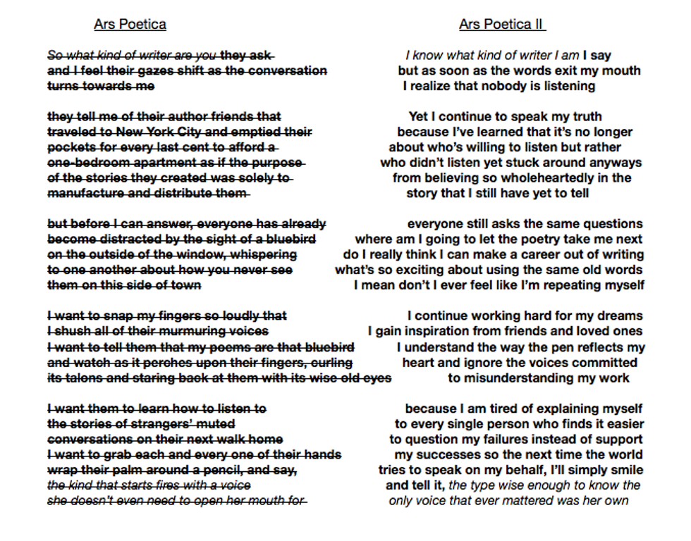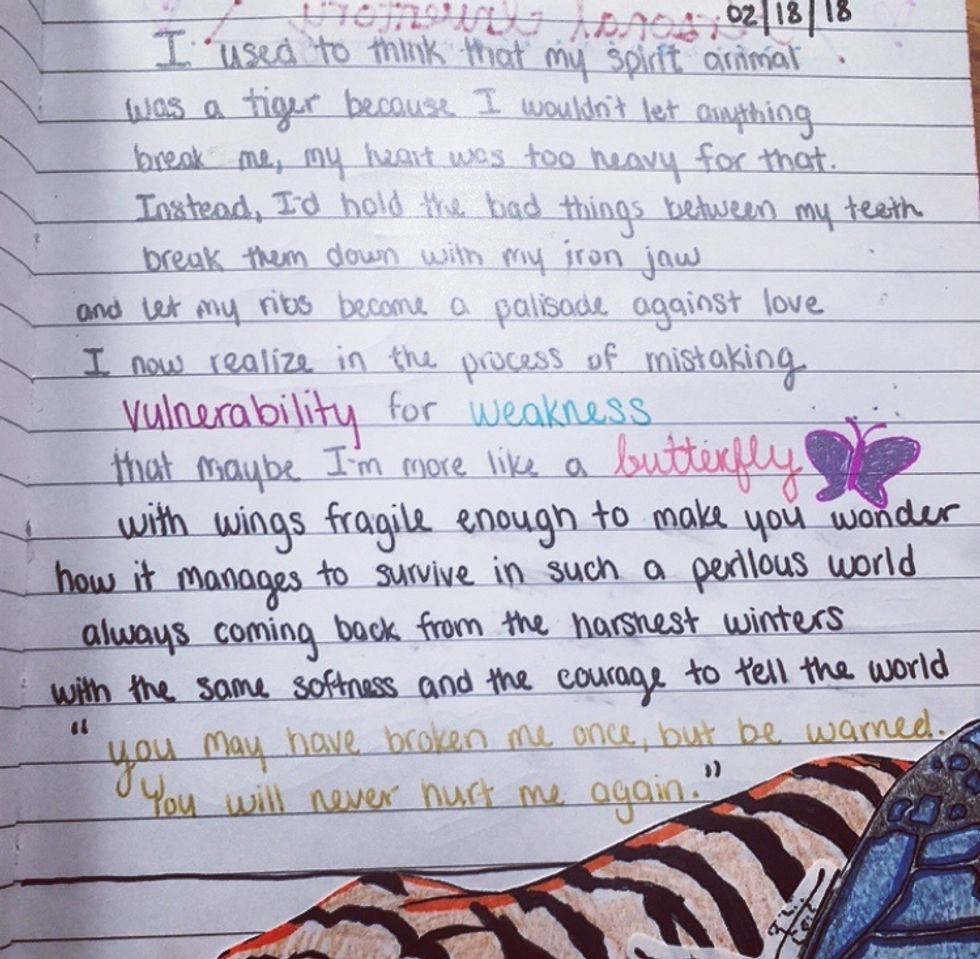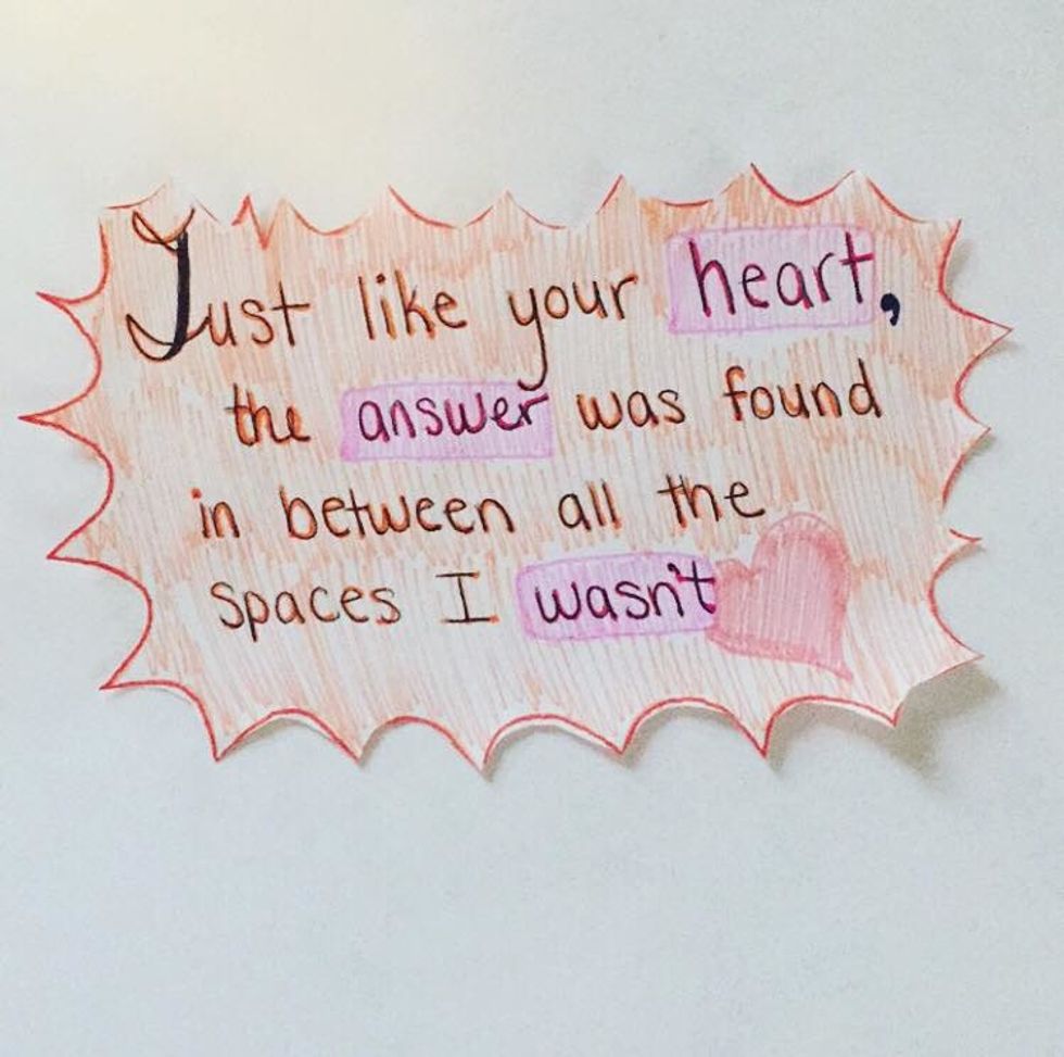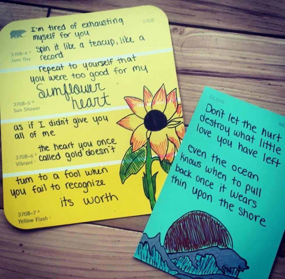 There's nothing more fascinating to a writer than words found in unconventional places, especially when they're anonymous and unfiltered. Vandalism is definitely not encouraged, but almost everyone would be lying if they said they hadn't left their own mark on a bathroom stall or park bench at some point in their lives. What many people may not know though is while writing on public property is still illegal, this technically qualifies as a poem! However, instead of choosing to write on whatever you can find, I recommend copying the style associated with graffiti as a way to combine both words and art in a visually expressive format. This technique is used frequently by Instagram poets, considering that its presentation allows for short one-line poems often followed by aesthetic graphics that appeal to poets and non-poets alike.