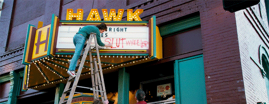 He drove from Tommy and Carol and to the movie theater, wanting to erase all evidence of his lowest point. Who knows how long he stood up there, scrubbing those hateful words away.