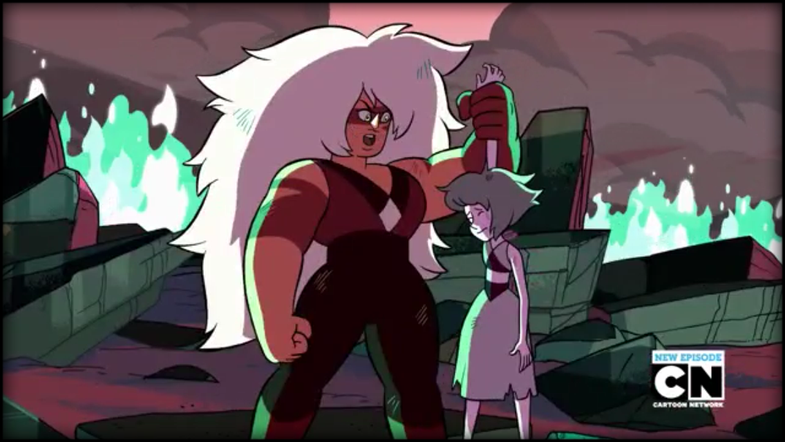 First thing that was done was that they established that the relationship between Jasper and Lapis was a negative one. This is beyond a simple, "Jasper is bad and so she treats Lapis bad". Though visually they do remind the audience that this does play a role. When handling Lapis before their fusion, Jasper is aggressive with Lapis in how she grabs at her and calls her names. This could be a way that the writing team wanted to establish there is no positive relationship prior to when it occurs in "Jail Break".