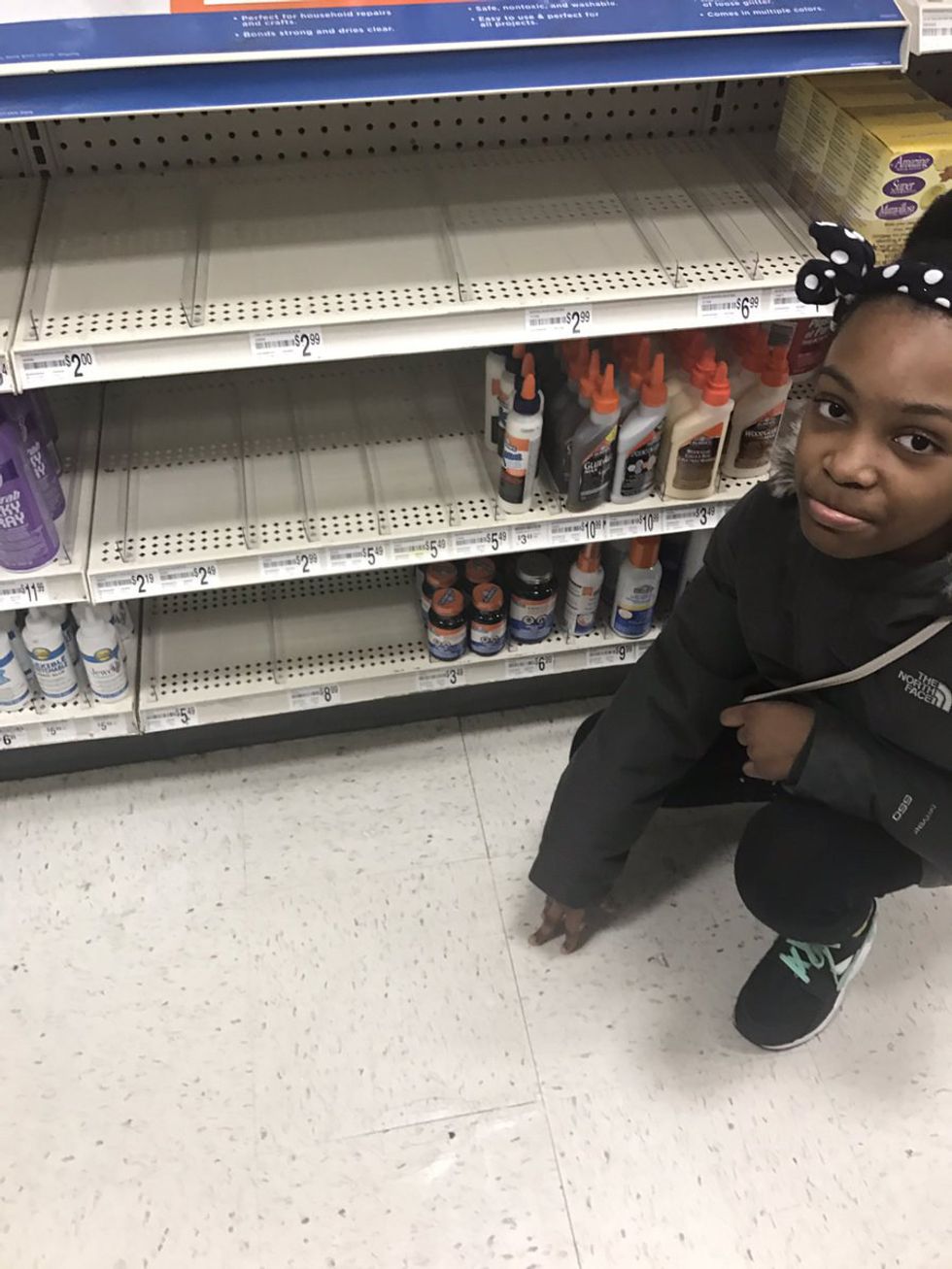 Stores can’t keep glue on the shelves because so many kids are making slime…mine included. #5StoresAndCounting #ScienceFairProblems pic.twitter.com/bhgkJXiMlK