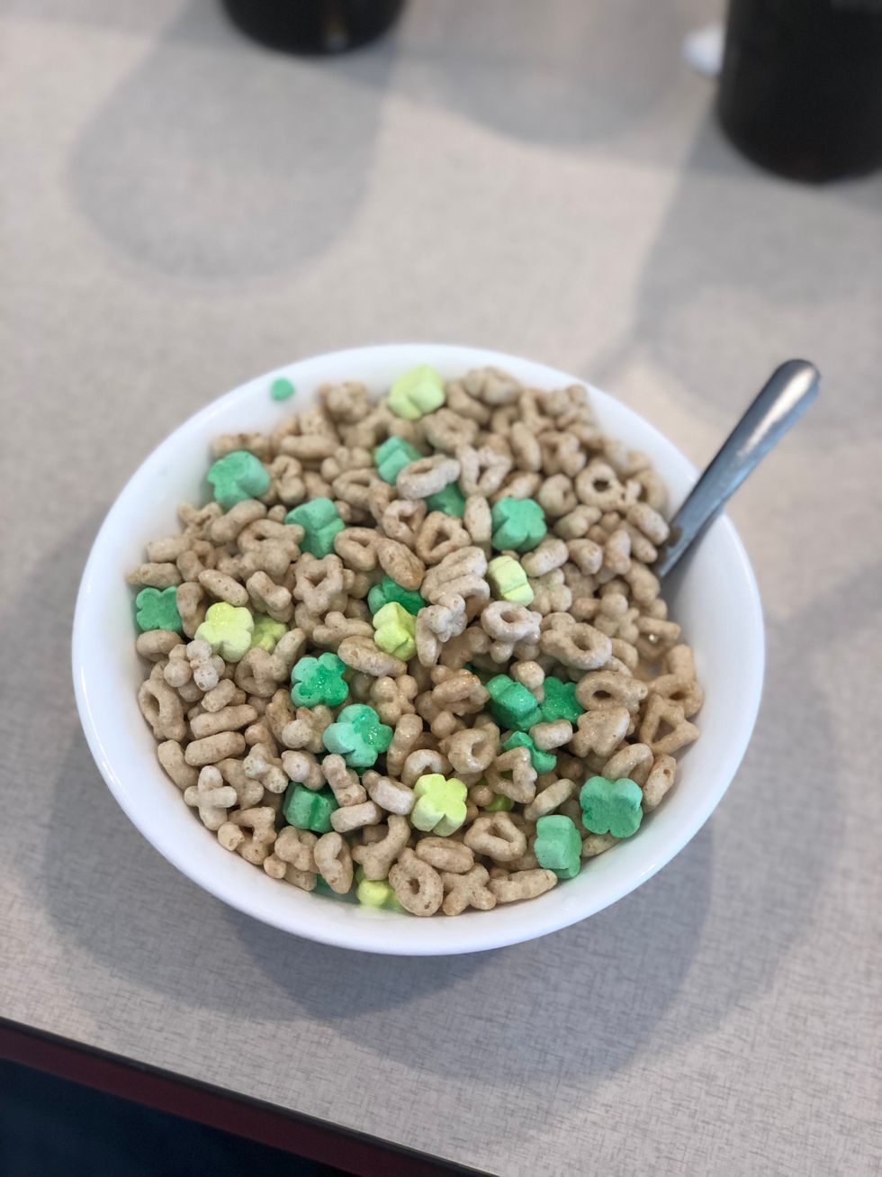 Whenever I eat at the dining hall for lunch at school, 9/10 times I end up eating cereal. I’ve had people ask me why I would choose Lucky Charms over Raisin Bran or Special K. Oh I don’t know, Nancy, why do you choose to eat macaroni with hot dogs in it? My food choices are the same as any food choice you make. I eat what I want because I want to eat it. It’s simple.