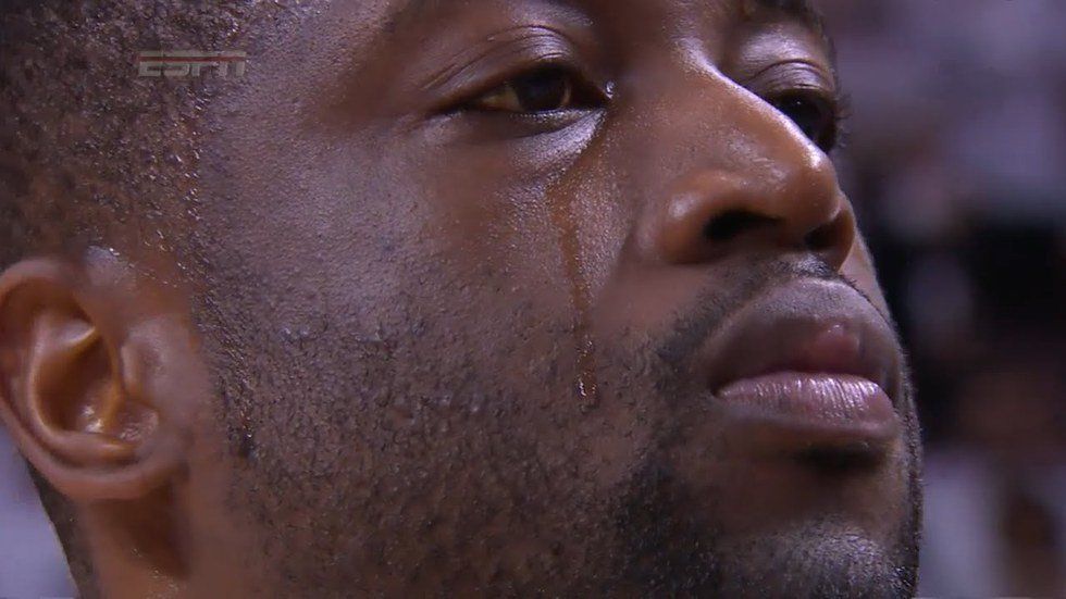 Wade, who has also been an outstanding competitor for team USA over the course of his career, showed us how much this short song means to him, not only in a USA jersey, but even in a Miami Heat jersey. It's evident in the way he carries himself and the way he plays the game, that the name on the back of his jersey isn't just there to let people know who he is, but to let people know who it is that plays with such passion and respect for his team and country. Keep in mind, this was a first round playoff game. Sure it was the deciding game of the series, but it wasn't even in the finals. Had the Heat lost that game (which they went on to win by an impressive margin), Wade would have been back at it in a couple months anyway. The tears didn't come after the game, but before it, creating what was possibly the most memorable moment of that series.