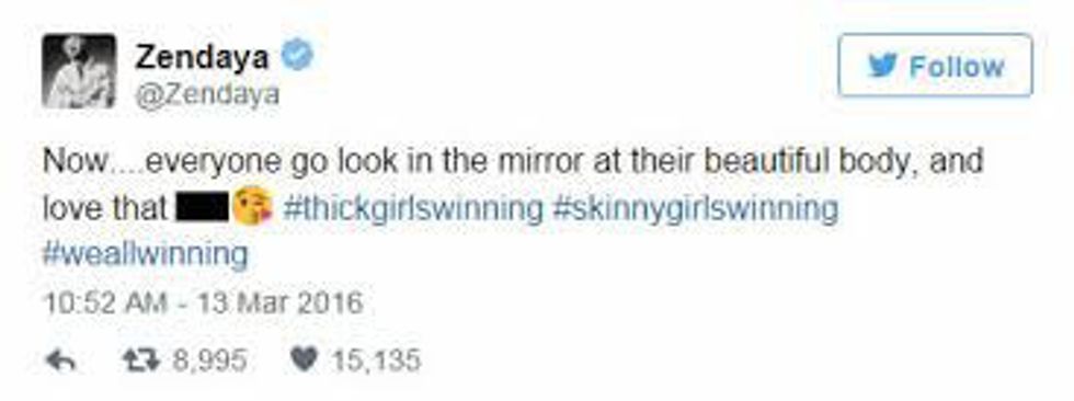 Social media enforces that "curvier is better" or "boys don't like girls who are too skinny." There are endless Twitter and Instagram posts highlighting the girls with bigger butts and thicker hips while shaming the girls with gaps between their thighs and small bodies. How can one body type be liked more than the other? Who decided that skinny was not attractive?
