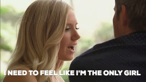 4. They're all so "in love" with the bachelor/bachelorette after a few dates, however, they have to keep their cool about the person they "love" actively being pursued by other suitors and doing Lord knows what while out with them?