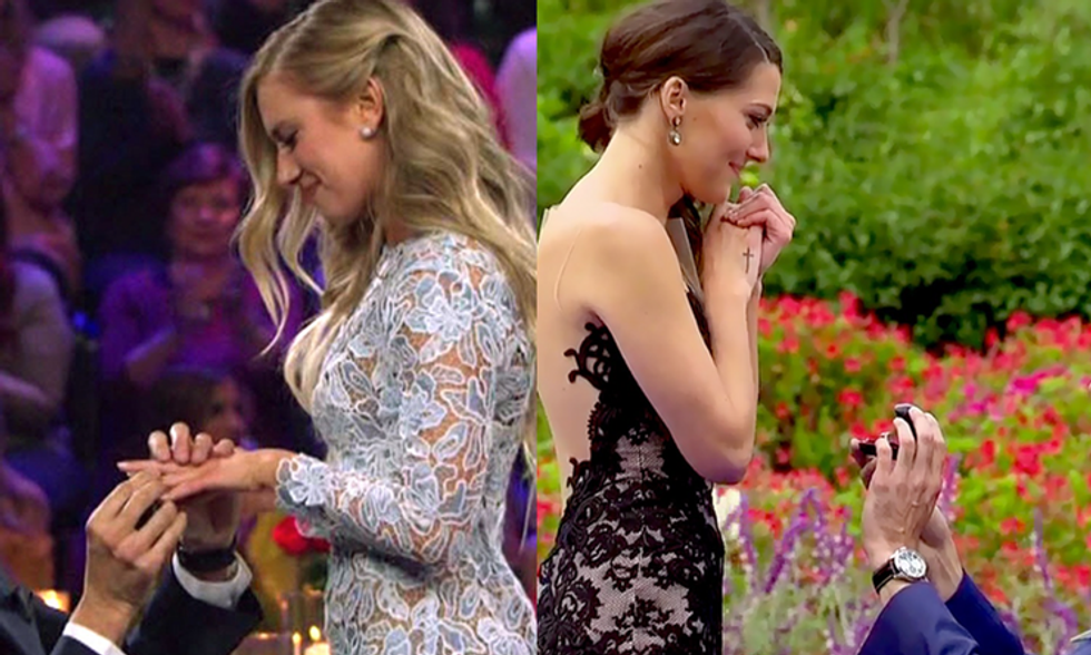 Lauren Burnham (left) and Rebecca Kufrin (right), during their proposals by Arie Luyendyk Jr.