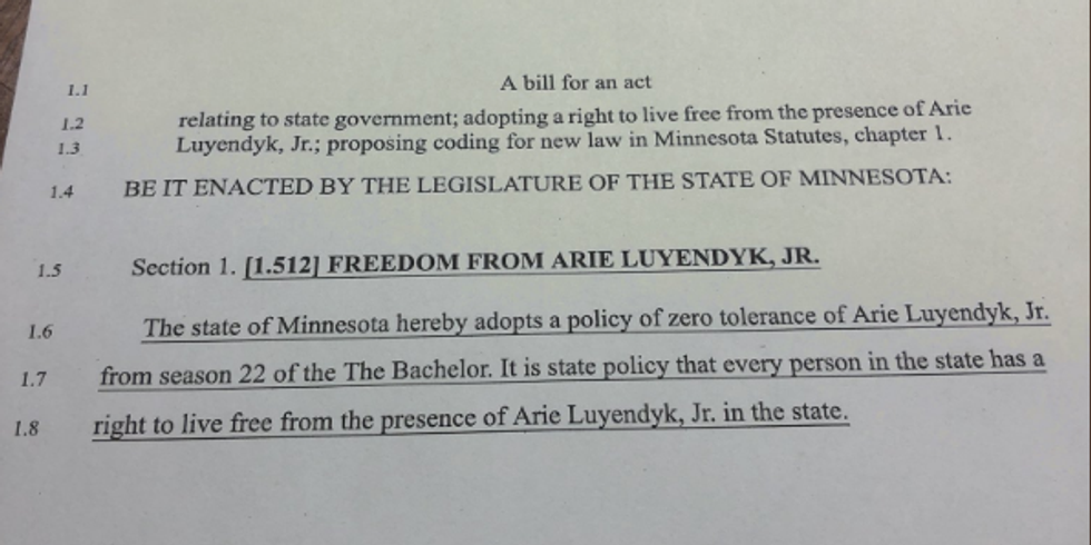 And if the billboards aren't over-the-top enough, let's not forget about the Minnesota LEGISLATOR who drafted a bill to ban Luyendyk from the state, due to Kufrin being a Minnesota native. This is a public official, who took time out of their day to draft a bill, banning a reality television star from their state. And sure, it all seems more tongue-in-cheek than anything, but it's plain to see that fans of the show are emotional over the outcome of the season finale.