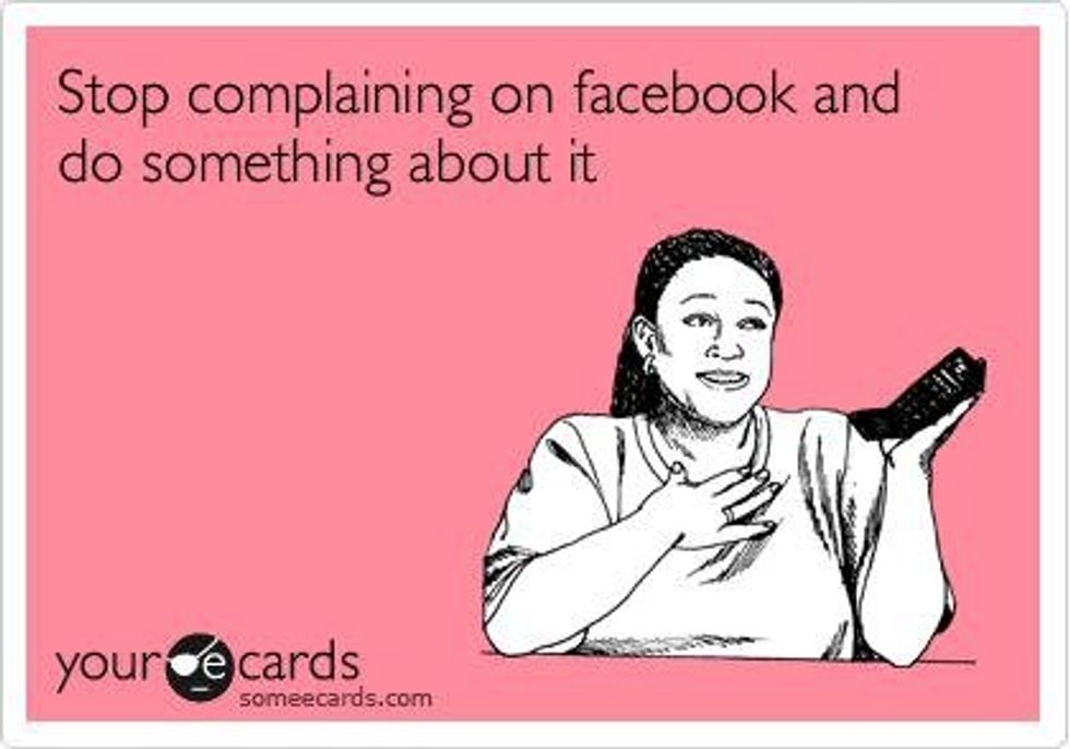 So-- stop complaining on Facebook. It's not helping anyone or anything.
