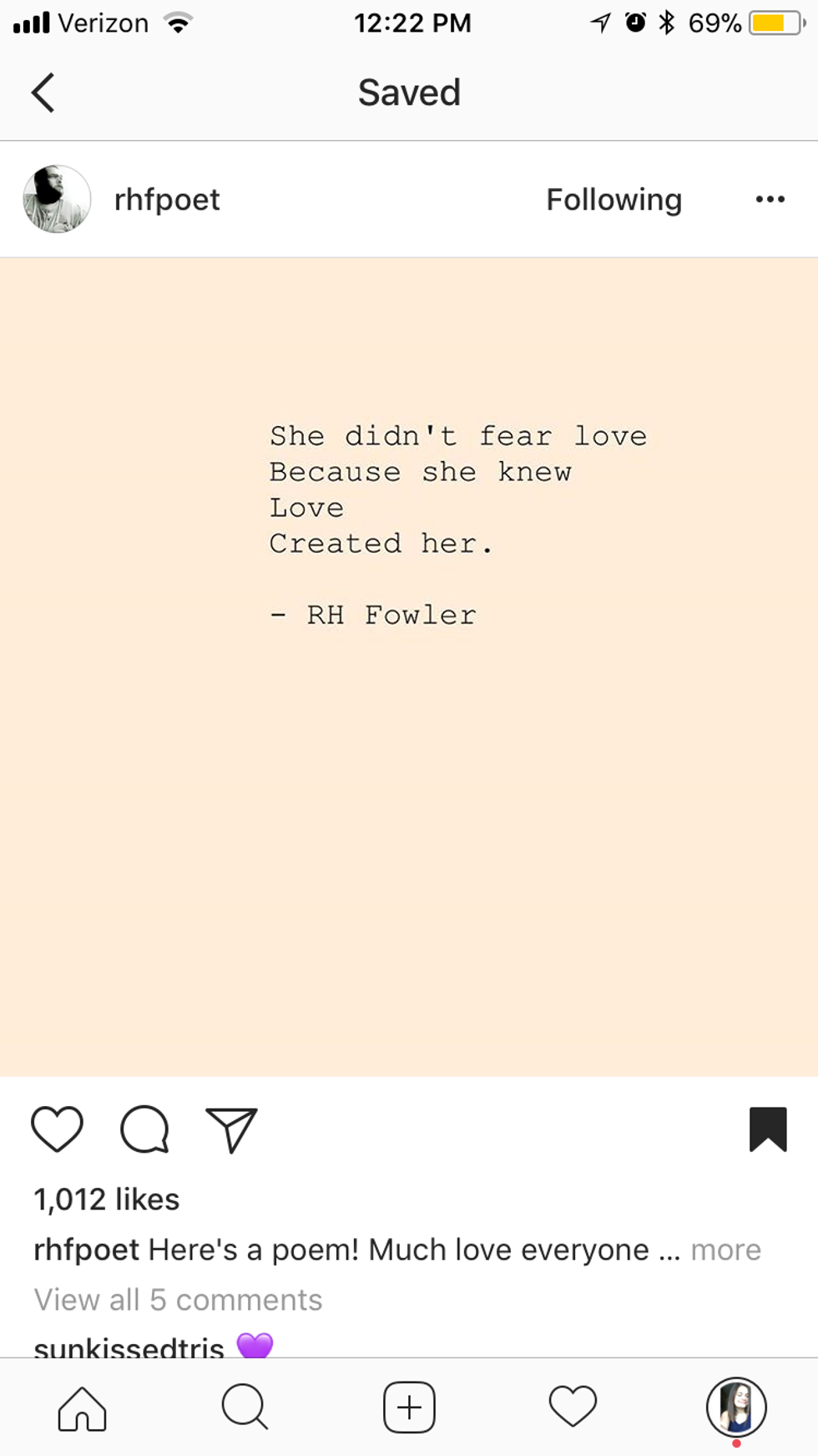 The rise of the “Instagram poet” has been a recent one, as social media has strongly taken off within the past decade. The poetry publishing business has been largely underground, and a mainstream site such as Instagram is a wonderful way to get your poetry and your name out there. If it’s there, why not utilize it? This is especially useful for poets who write incredibly short (a stanza, if that) poetry whose format are easily applicable to the Instagram format.