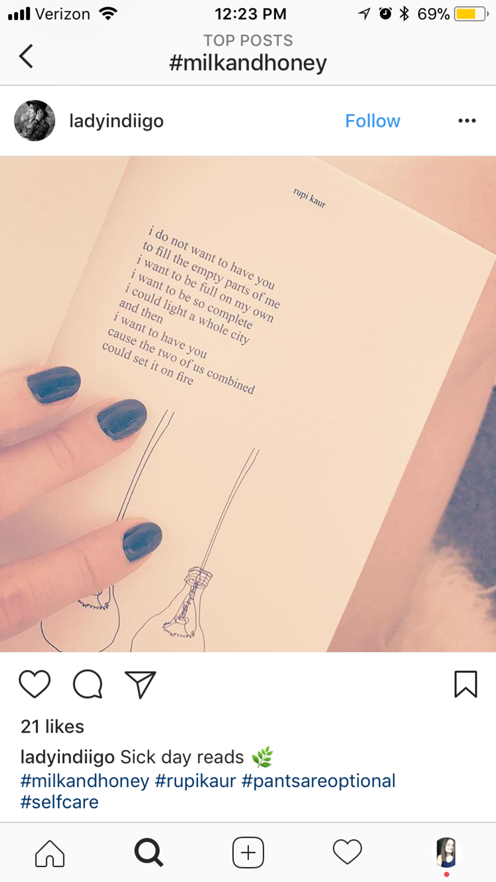 Poetry is by far one of my favorite forms of art. I read it, I write it, I live it. Honestly, my Twitter has become a collection of lines of poems that I’ll never write. Some days, I would be completely and entirely satisfied by doing nothing more than sitting outside at night, watching the world and writing poetry. With all of this in mind, it MASSIVELY pisses me off when I see people bashing on poets like Rupi Kaur ("Milk and Honey" poet) for their Instagrammable style of poetry. In fact, some of my favorite poets that I’ve found have been from Instagram.