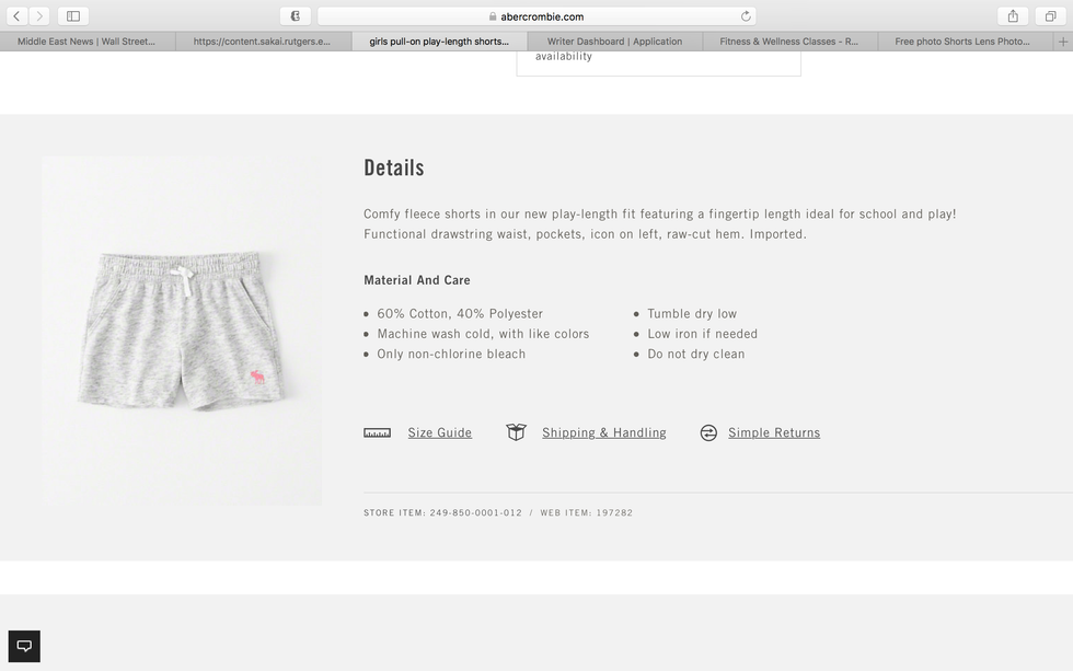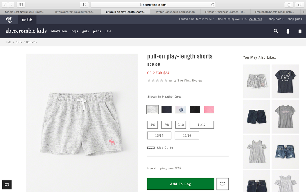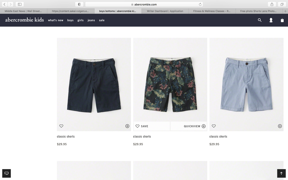 Most stores have a girl and boy section. Makes sense because males and females have different bodies. However, boys and girls have similar bodies under the age of 12. So that is why I was surprised when a classmate of mine who went shopping the other day at Abercrombie told me how they design and promote shorts for girls and boys.