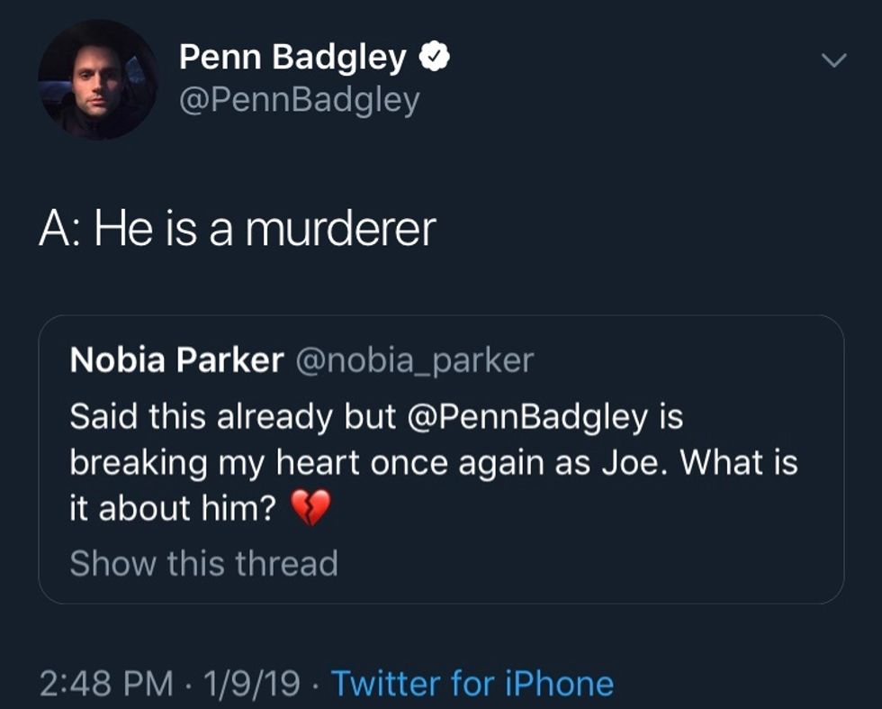 - Penn Badgley Tweeted at Fans of His Psychopathic 'You' Character ... ›