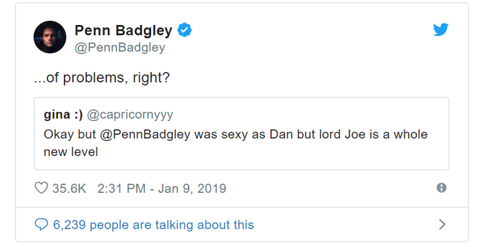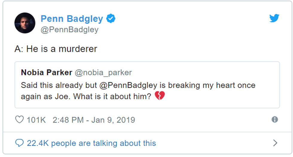 'You' has only been on Netflix since December, but the first season has become a big topic on social media. The actor himself has noticed some fans tweeting about their attraction to his character. And this doesn't sit right with anyone, especially Penn Badgley. It's upsetting that many of the 'You' fans are willing to see past Joe's obvious dangerous qualities such as kidnapping, emotional manipulation, stalking, and murder, to post tweets about how Joe is the kind of boyfriend they need because he's always at Beck's side. Penn Badgley urges fans that while Joe is a guy you like to watch on TV, he's not a guy you should like in real life.