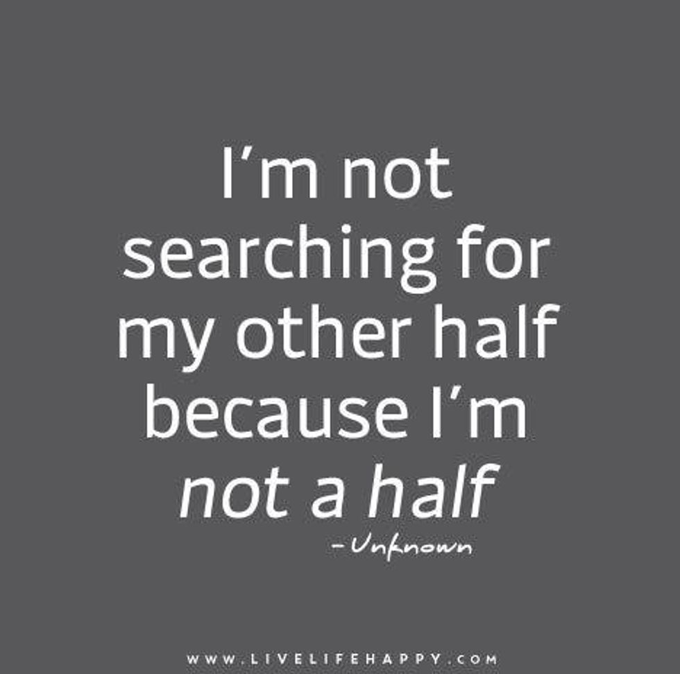 There is a quote that I love by an unknown source: "I'm not searching for my other half, because I'm not a half."