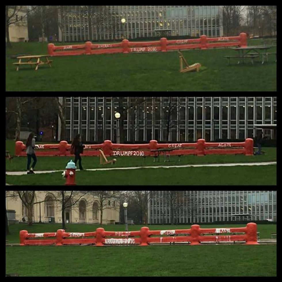 At Carnegie Mellon University, if you want to get a message across, you paint The Fence. It's basically an on-campus billboard for anything that you want to say. Last Friday, people painted it as a memorial to honor two students who had died in the past week. By Sunday night, it was painted to reveal a different message: "Make America Great Again. Trump 2016."