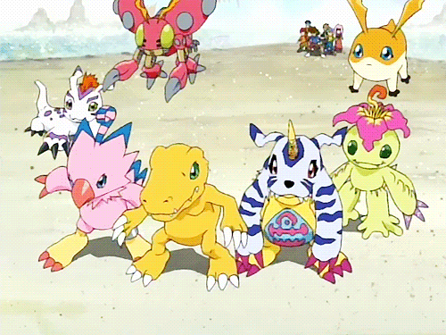 Meanwhile on the other end of the spectrum, Digimon has had several seasons that constantly introduces new cast members while still showing old members aging and doing different things with their life (Digimon Adventure and Digimon Adventure 02). The kids in the first Digimon Adventure (the digi-destined) are a bunch of kids who get picked to save the digital world because they have overwhelming traits that are essential to saving the world. They arrive (or are dropped off) in the digital world and choose to stay and fight alongside their digimon partners to battle out the evil digimon, in order to save their beloved world. These chosen children were partnered up with a digimon partner for life, that could evolve into bigger and stronger digimon through the bonds made by them and their digidestined.