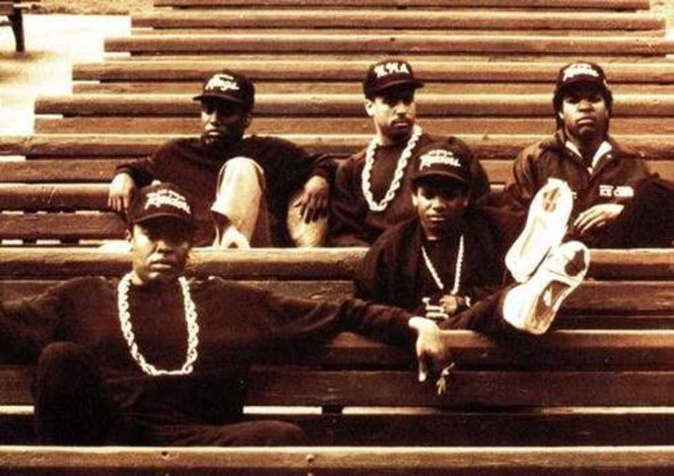 Above is a song from a popular 90s rap group called N.W.A. The group consisted of Ice Cube, MC Ren, DJ Yella, Dr. Dre, and the late Eazy E. Straight Outta Compton is based on the group's journey all the way up to the death of Eazy E and Ice Cube's writing of Friday (a comedy released in 1995).