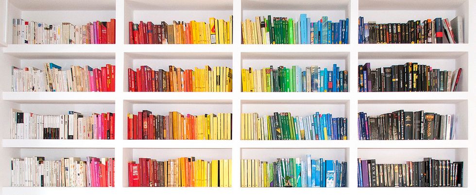 My absolute dream is to have something like this in my own house one day: bookshelves that reach floor to ceiling and color-coded. Yet again, organization (and literature) makes my heart happy.