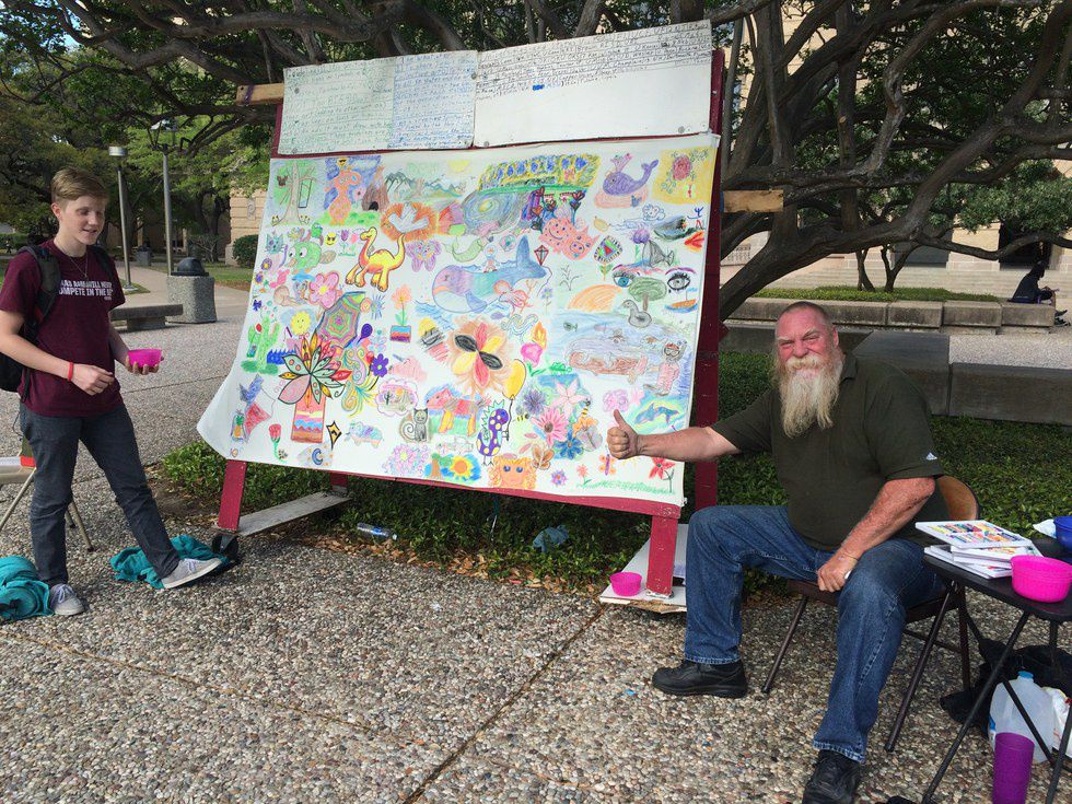 Paul is an old man. He has a long beard and his eyes have this twinkle because the Holy Spirit is about to burst out of him. Paul has been a missionary for over 25 years. But he is not just any missionary, he is a missionary through art. Paul travels to college campuses with a giant sheet in tow. On this sheet he lets the students color anything they want. Paul loves art and people, but more than that, Paul loves Jesus.