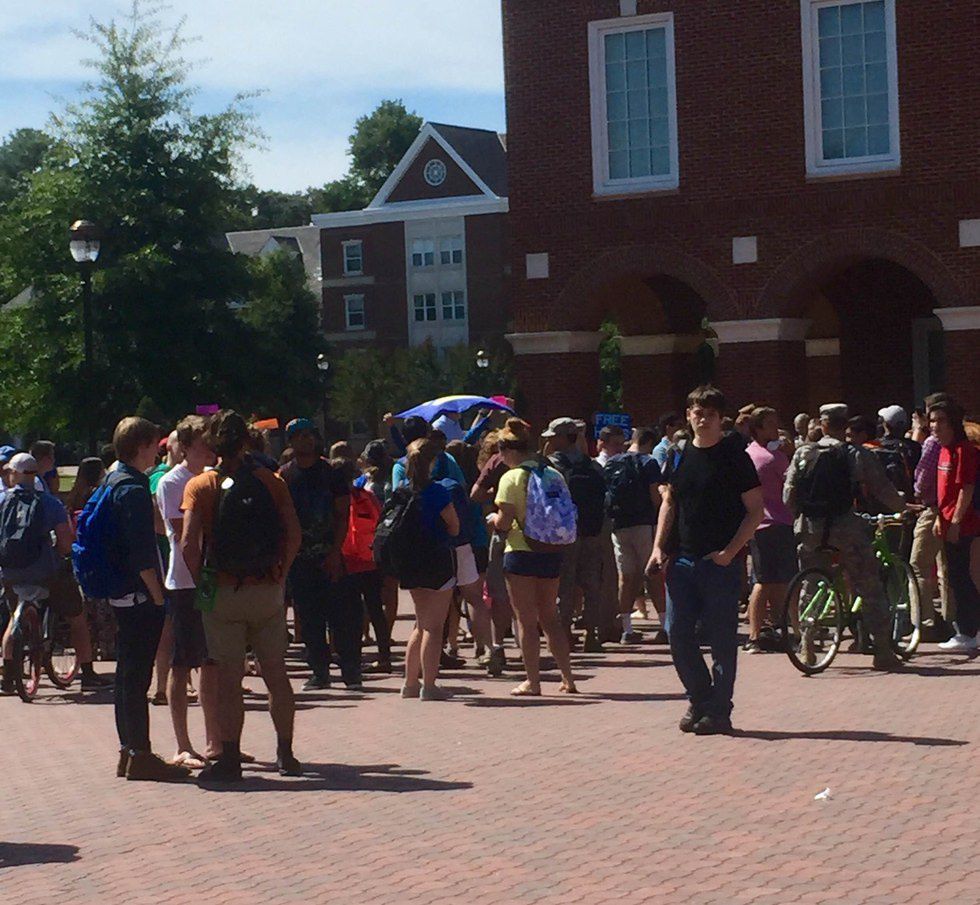 "He [Karns] was able to speak, and we just made sure our presence was known," said Sarah Kerndt, the president of Spectrum. "The idea was to remain peaceful, so we respected his right to speak.The whole idea was just to share the love. Love is a complicated word, but in the end everyone deserves love. Everyone deserves to feel happy and respected. Yesterday was truly an incredible sight to see because I know now that I go to a school where Captains truly accept and care for one another."
