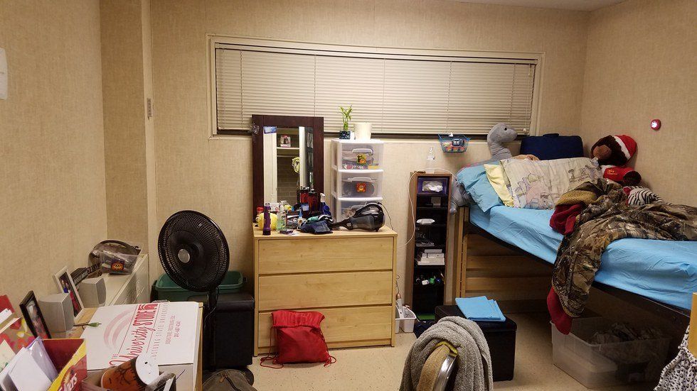Ok just.. just put it down over there please. No, no not there, over there by my bed.