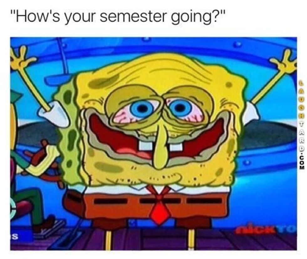 As a child, I never realized that childhood TV shows would somehow describe my life perfectly one day. College has been quite the experience. To help explain the struggle part of this experience, I am bringing in my old friend Spongebob Squarepants. Here are the struggles of a college student featuring Spongebob.