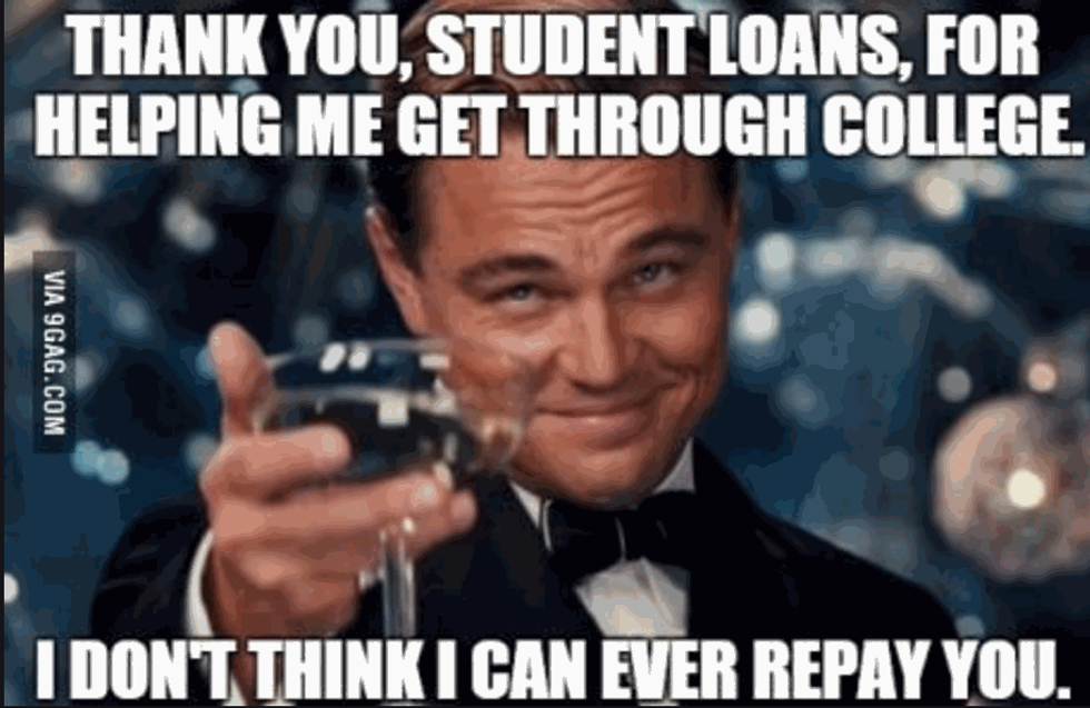 1. Student Loans- It is almost impossible to get through college now without student loans, and once you start you will never be able to stop getting them and you will probably be paying them until your old and gray.