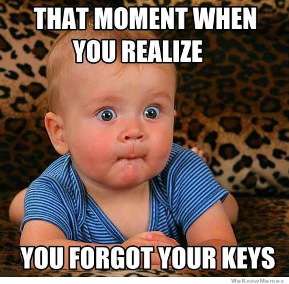 2. Living in a dorm- Do not forget your keys because your mom is not there to tell you where the spare is, and guess what? There isn't a spare. You better call your RA and hope she isn't in class.