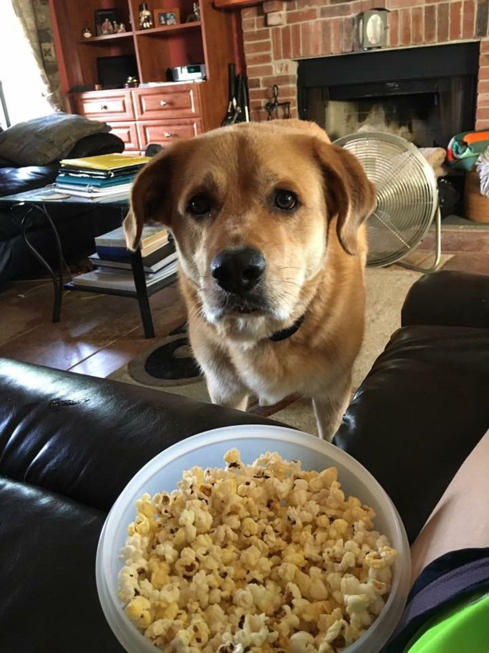My dog begs so much! He sits next to me and puts his head on my leg and he’s just so cute that I can’t say no. I end up giving half of my food!