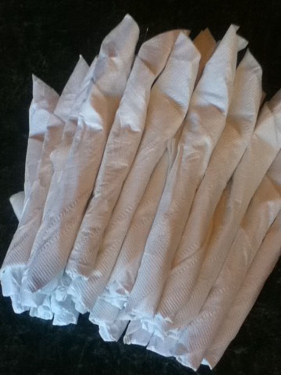 Rolling a large basket of silverware (while being hot, exhausted and dying to go home) may possibly be a new torturing tactic.