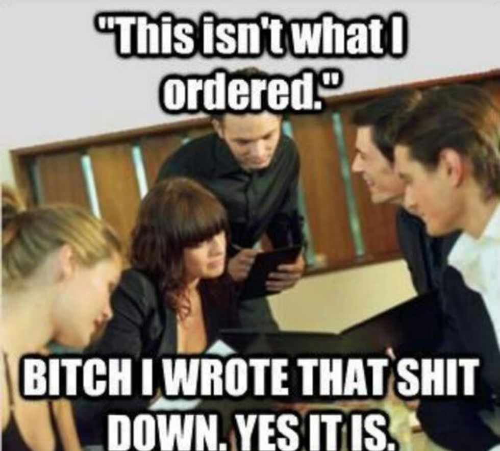 6. If the kitchen or bar messes up, you’re the one that gets yelled at.