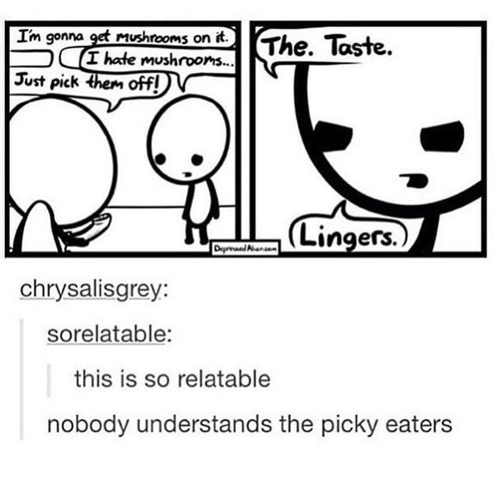 Being a picky eater definitely has its struggles. For one, people look at you like you are peculiar. However, being a picky eater doesn't make you weird, it just means that you have a certain liking for some foods while you avoid others. The pickiest eaters are usually toddlers, but for some, being picky continues through the rest one's life. It is very common for babies and toddlers to be picky eaters, but thankfully, most people outgrow picky eating once they get older, such as in childhood and adulthood.
