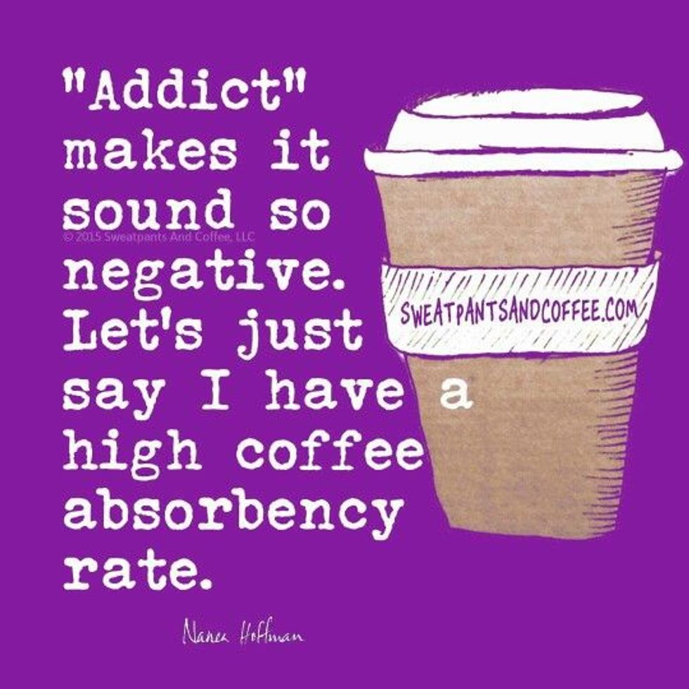 I admit that I'm far too addicted to coffee. Without it, I get sick and can't function properly. I have a very strict coffee schedule that I adhere to at all costs. Fortunately, I'm not addicted to any other substances, though writers are often known for being alcoholics.