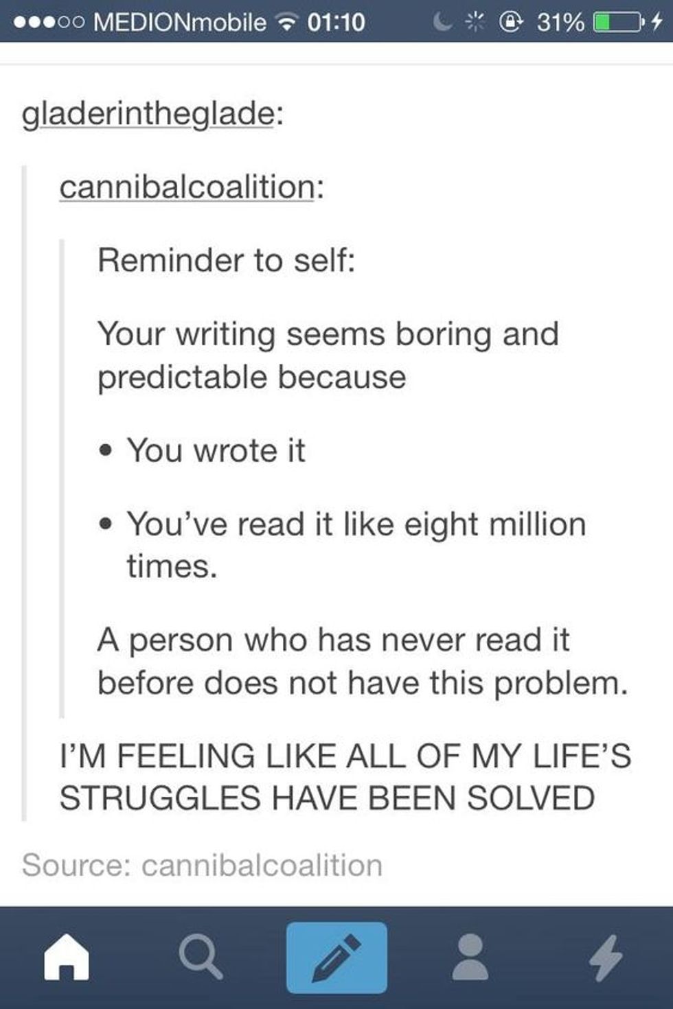 6. The hardest part about being a writer is actually writing.