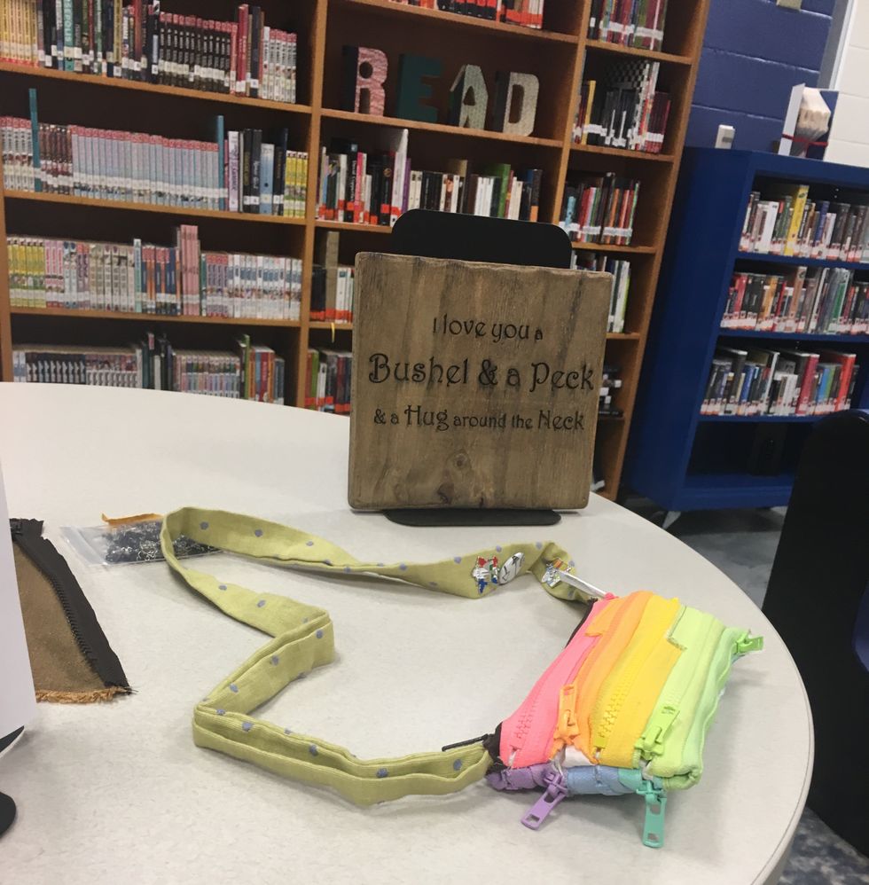 This expandable zipper bag and wall decor was hand crafted by the Centennial class of 2018 valedictorian Chloe LeCates.