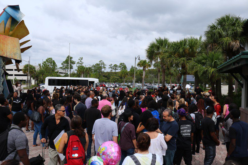Students and faculty gathering at the FGCU bus loop. Students from COBOL are about to start their peaceful protest.