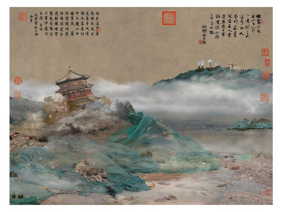 “I chose traditional Chinese painting because there is an aesthetic and poetic sense, while garbage is destructive and undesirable. The undesirable comes from what was once good, so I wanted to restore their beauty and poetic sense, to express my memory of the past. I myself don’t like works full of blood and nonsense. I hope there is a concept of beauty in it. Even if it is criticism, it should be expressed in a language of praise…Photography can be understood in traditional ways: it can “record” many histories long before our own time, and situations many years ago. But photography is also very contemporary. It can reassemble and re-edit the things that we see in order to produce illusions that people see when they are in front of such photographic works. In these works, you see images that are both real and fictional.”