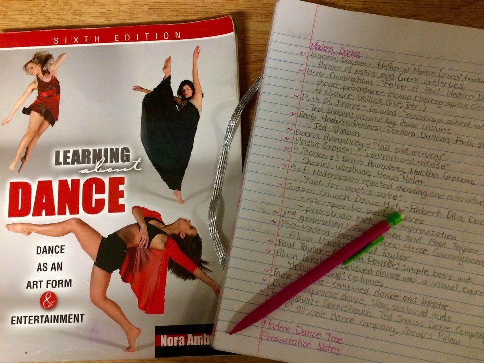 Whether they're provided by a kind-hearted professor, or you have the willpower to make them yourself, a study guide will be your Bible to any exam. I define a study guide as everything and anything that could be on the test all in one place. As I mentioned before, my Intro to Dance professor uploads a study guide prior to every exam. I pull it up on my laptop and write out answers to every question in my notebook. From there, I have all the material to put on my flashcards. It's a lot of writing, but I tend to remember material better when I write it down instead of just reading over it a few times.