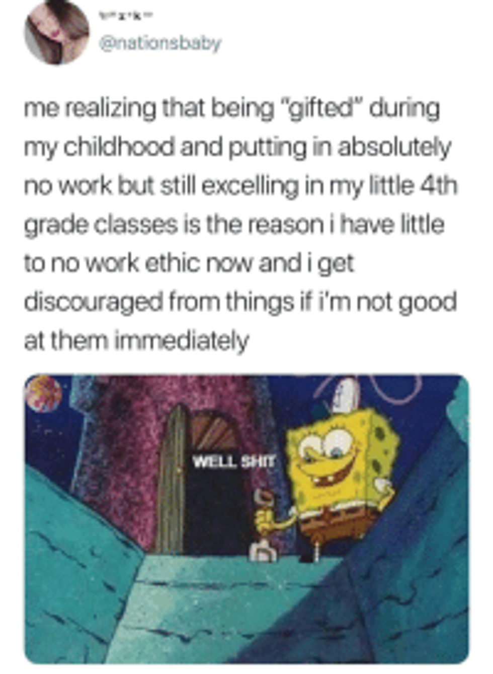 Now that I am here and knee-deep in my classes, I have realized that being "gifted" is going to get me nowhere.