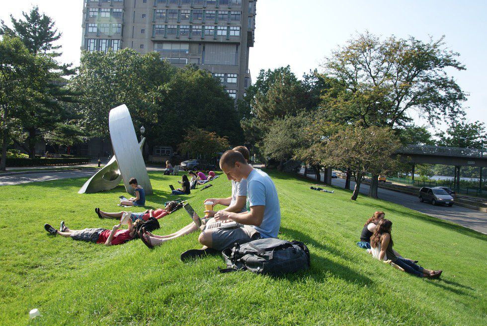 Like the Esplanade, the BU Beach is the perfect spot on campus, located behind Marsh Plaza, to study outside. The BU Beach is not a beach, but is named the "beach" because if you put your ear to the grass then the cars driving along Storrow Drive sound like waves.