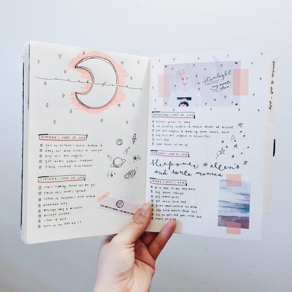 Bullet journaling is a popular form of mixed topics journal that is personalized according to each person's needs. Typically, it has an index, a calendar, and a planner type spread for each month. The bullet journal is meant to be used to keep track of the things due, a place to keep up with general life, a diary, and a fun canvas for people who likes to decorate. Since it is your personalized journal, you can make it however you want. People sometimes put fancy headers, such as for months or which day they are keeping track of. Doodles, stickers, photographs, and other decorative items could be put there to make the journal pop. Journal brands such as Moleskine are popular among the studyspo community, but regular journals can do just as well.