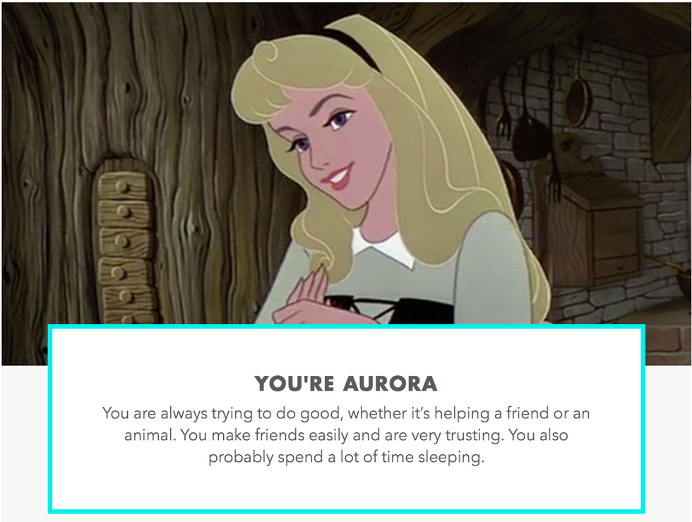 (Yup that's me. Exactly like Aurora. Also never knew that was her name so maybe these quizzes teach you a thing or two. Still, don't post about it.)