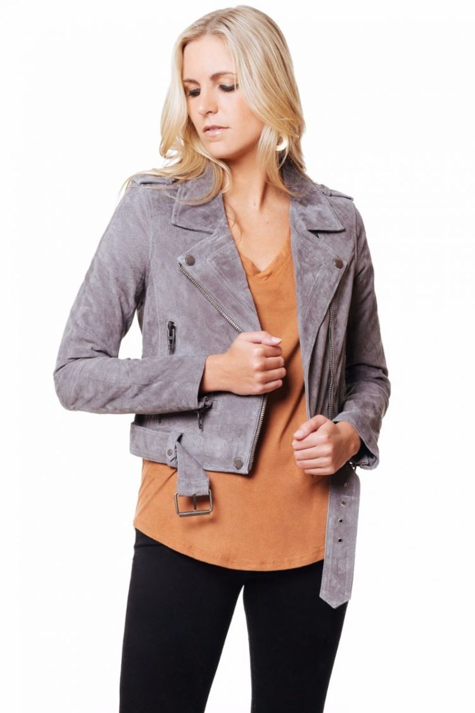 Blank NYCSay 'hello' to your classic moto jacket reimagined for fall 2017! This updated version features lilac suede and silver details that are sure to elevate any casual 'night out' look. The cuts and lines of this style give an edgy vibe, but when paired with the small silver details, femme color, and super soft material, this jacket just screams 'chic!' So make this suede superstar a part of your outerwear arsenal this fall and visit your local Bevello or Blank NYC retailer to give it a go with a neutral top, dark-wash denim, and some heeled booties.