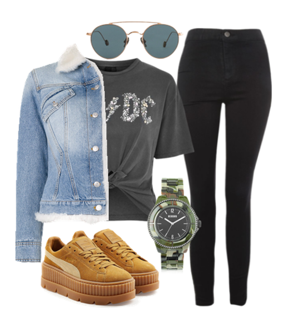 There are various names to refer to our topic of choice - the "borg" denim jacket, the "sherpa" denim jacket, and (my personal pick) the "shearling" denim jacket. This is by far the coziest style of denim to have in your closet and an easy jacket to throw on for any outfit. With the current fall transitional period upon us, we face the boundary line between high and low temperatures. It's hard to find something that'll keep you warm in the coldest of mornings and keep you cool during the warmest peak of the afternoon sunshine. Denim jackets are effortless when it comes to layering throughout the day.